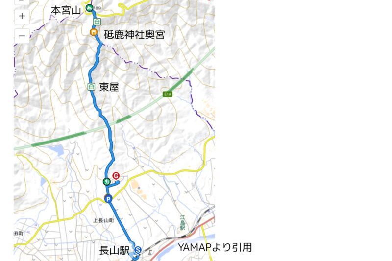 - コース概要:JR長山駅 → 本宮山登山口 → 東屋 → 砥鹿神社奥宮 → 本宮山山頂(往復)→ 登山口 → 本宮の湯 →(バス)豊川駅